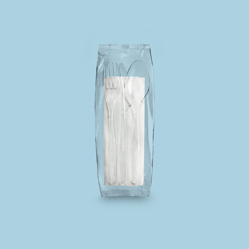 Set Servilleta, tenedor+cuchillo+cuchara sopera Cristal (500 unidades)